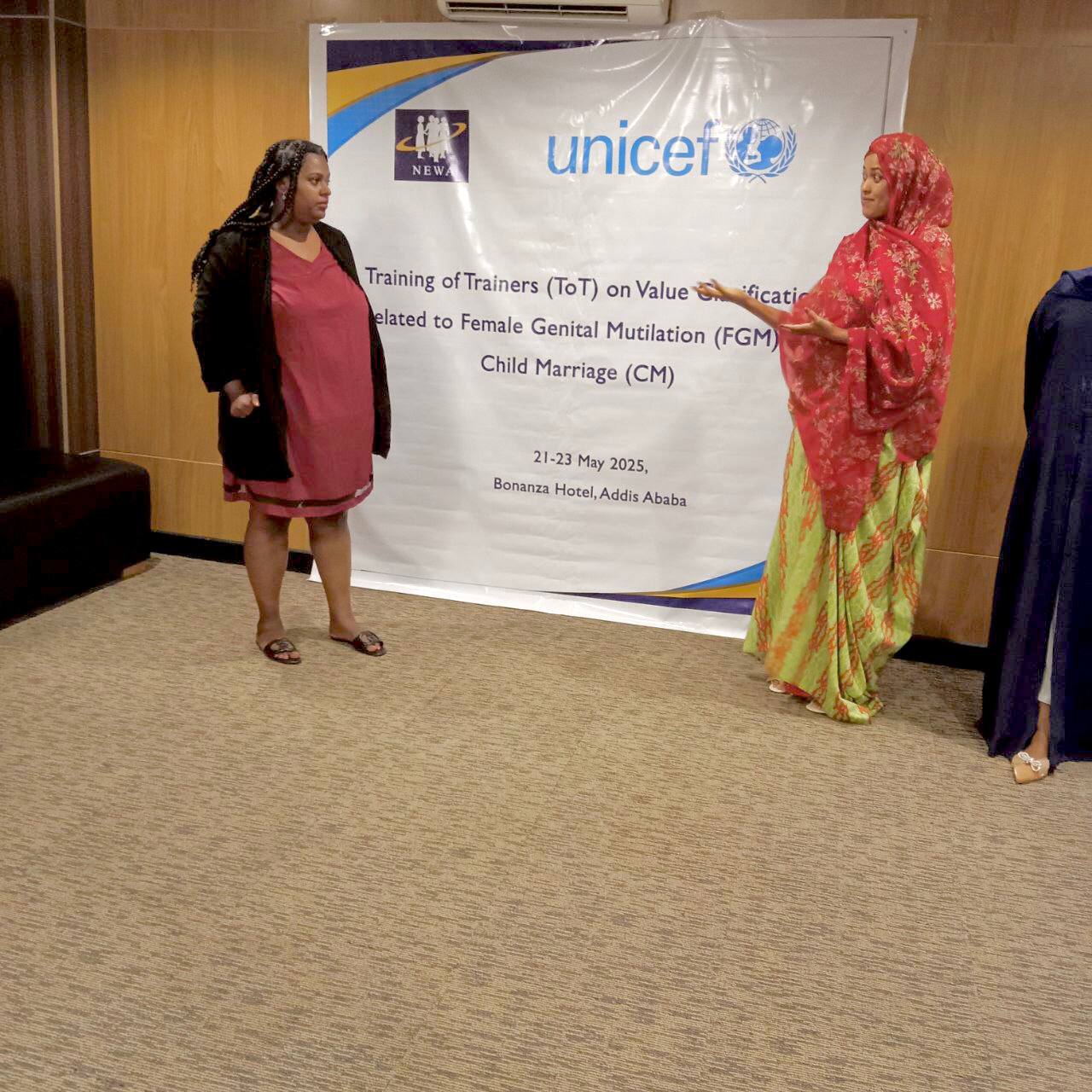 Addis Ababa, Ethiopia – In a significant move toward eliminating Female Genital Mutilation (FGM) and Child, Early, and Forced Marriage (CEFM), the Network of Ethiopian Women’s Associations (NEWA) conducted an intensive Training of Trainers workshop from May 21–23, 2025. Held in Addis Ababa, the event brought together 18 participants from the Amhara, Oromia, and Somali regions, as well as the capital, to equip them with the knowledge and skills needed to tackle these harmful practices.