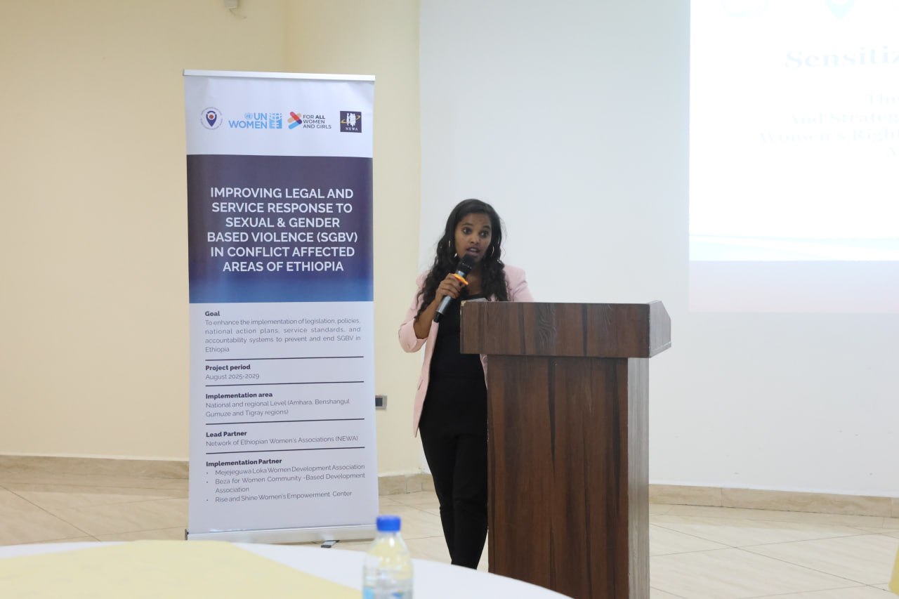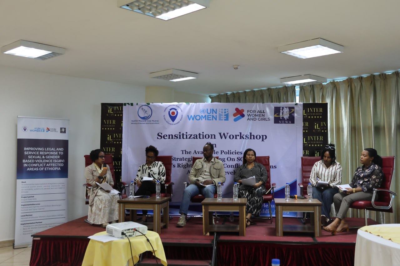 On April 3, 2026, the Network of Ethiopian Women’s Associations (NEWA), in collaboration with the Ministry of Women and Social Affairs and with support from the UN Trust Fund to End Violence against Women, organized a one-day national sensitization workshop on policies and strategies addressing Sexual and Gender-Based Violence (SGBV) and women’s rights in conflict situations, held at Inter Luxury Hotel, Addis Ababa, Ethiopia. The workshop brought together over 40 participants from government institutions, civil society organizations, development partners, and women’s rights advocates to conduct a structured analysis of policy and implementation gaps, assess institutional accountability, and generate evidence-based recommendations to strengthen responses to Sexual and Gender-Based Violence (SGBV) and women’s rights in conflict situations.